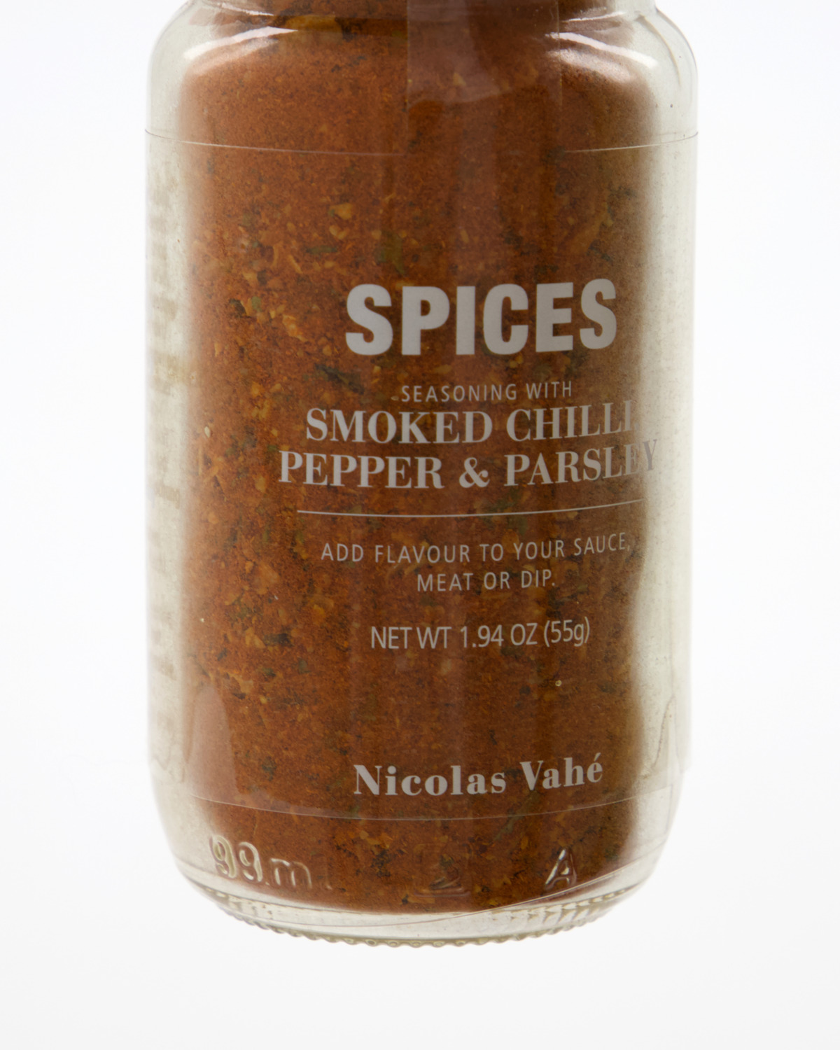 Ingredienser: Krydderiblanding med røget chili, peber og persille, smoked chilli, hvidløgspulver, løgpulver, crushed black pepper, persille, purløg.