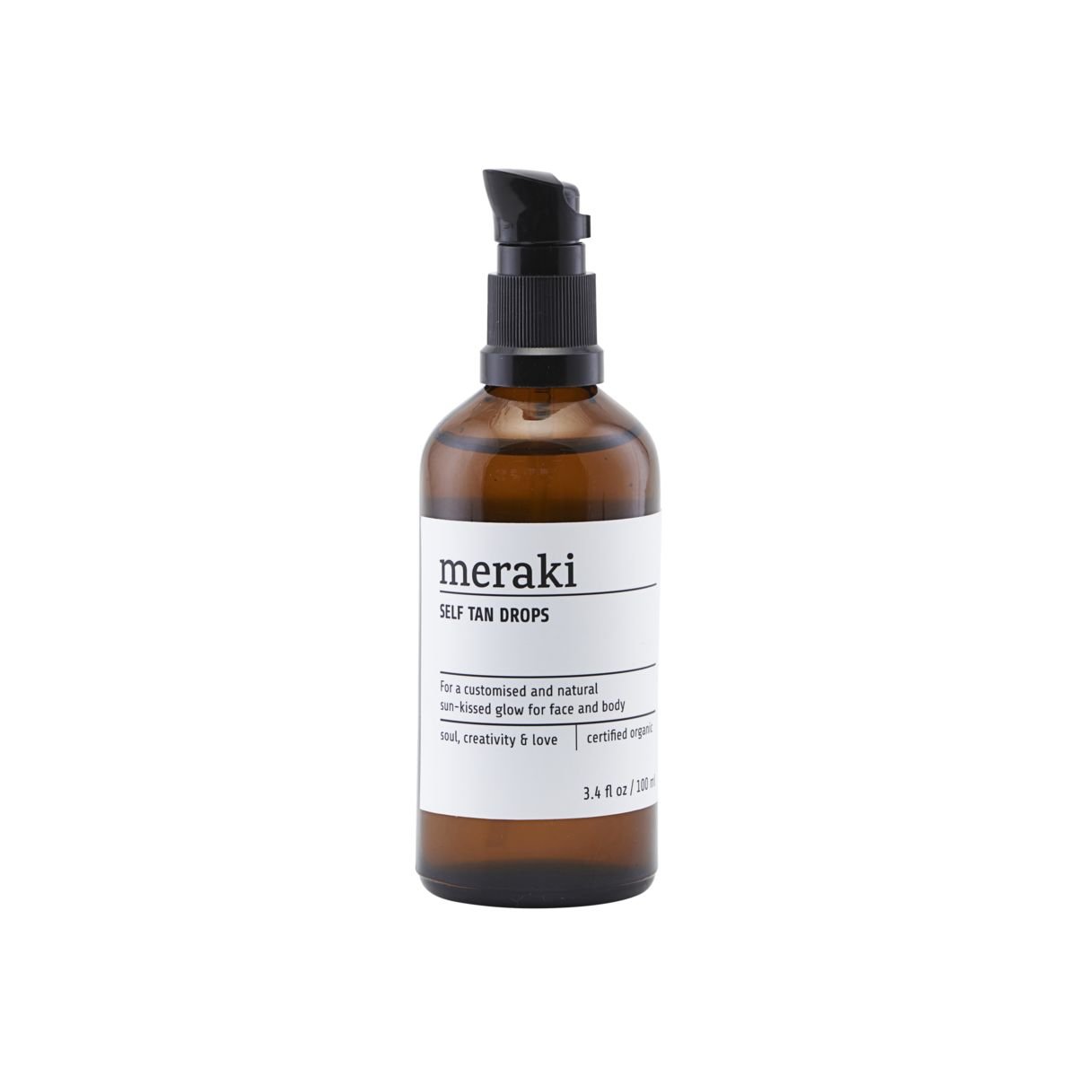 Mangler du glød i ansigtet og på kroppen, men ønsker en nem løsning? Disse selftanning drops fra Meraki er økologisk certificerede og kan anvendes hele året rundt – og er dermed perfekte til at give huden en sund kulør om vinteren eller til at vedligeholde den lækre sommerglød. En nem løsning, der let kan bruges i den daglige plejerutine. Mix den blot med den daglige bodylotion eller ansigtscreme. Ved selv at dosere mængden af produkt, kan man gradvist opbygge farven, indtil man opnår den ønskede kulør på en sund måde.